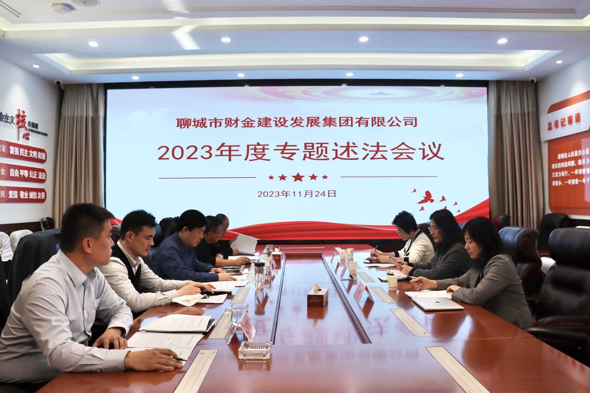 為貫徹落實(shí)黨中央關(guān)于全面依法治國的部署要求、落實(shí)推進(jìn)法治建設(shè)第一責(zé)任人職責(zé),充分發(fā)揮領(lǐng)導(dǎo)干部在法治建設(shè)中的示范引領(lǐng)作用,按照市委依法治市委員會要求,11月24日上午,財(cái)金集團(tuán)召開2023年度領(lǐng)導(dǎo)班子專題述法會議,邀請市司法局四級調(diào)研員魏琳、市人大代表張樹杰、市政協(xié)委員薛國玉參加會議并對述法對象進(jìn)行評議,財(cái)金集團(tuán)黨委書記、董事長張繼堯點(diǎn)評并作重要講話。